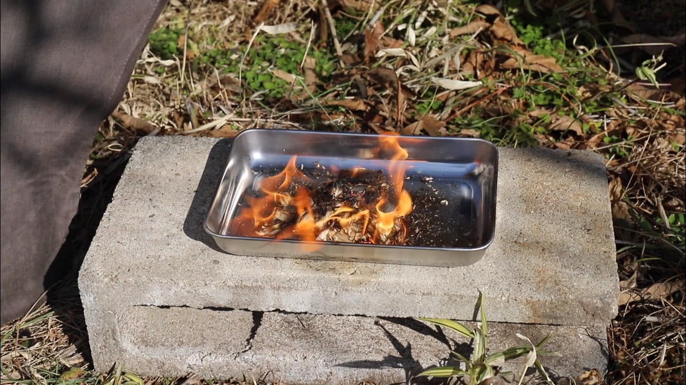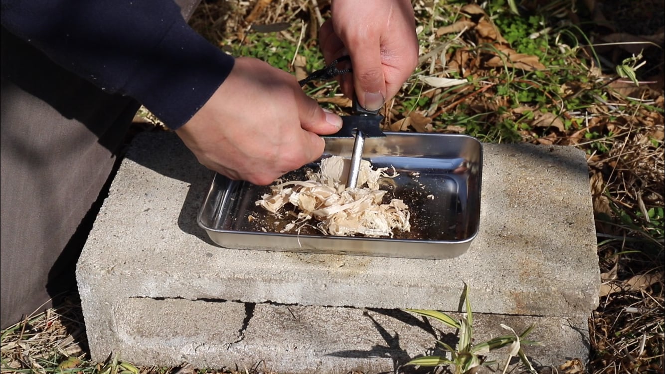 YouTubeにて、この鉋屑を使ってファイヤースターターで着火する様子を動画で公開しています。是非ご覧ください。