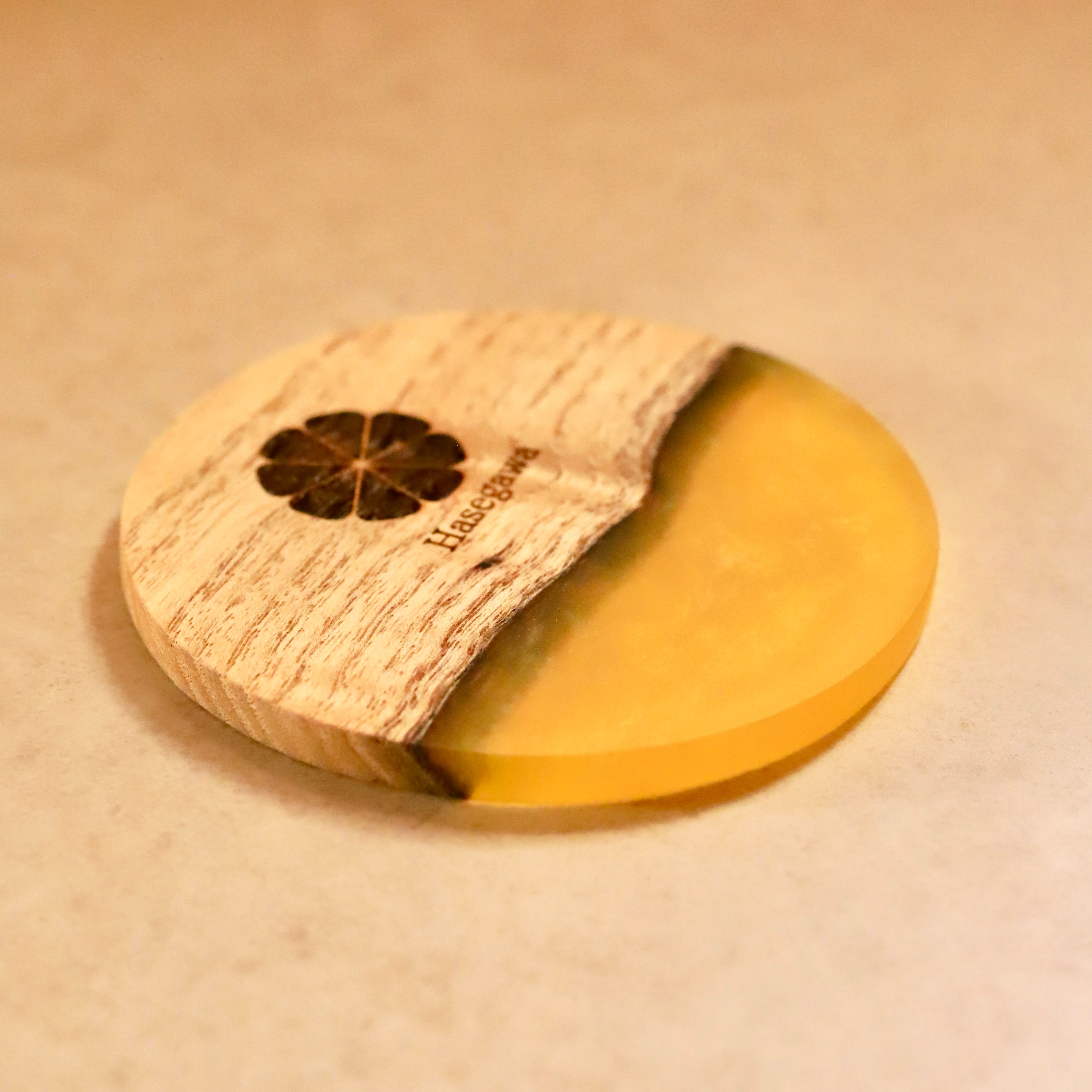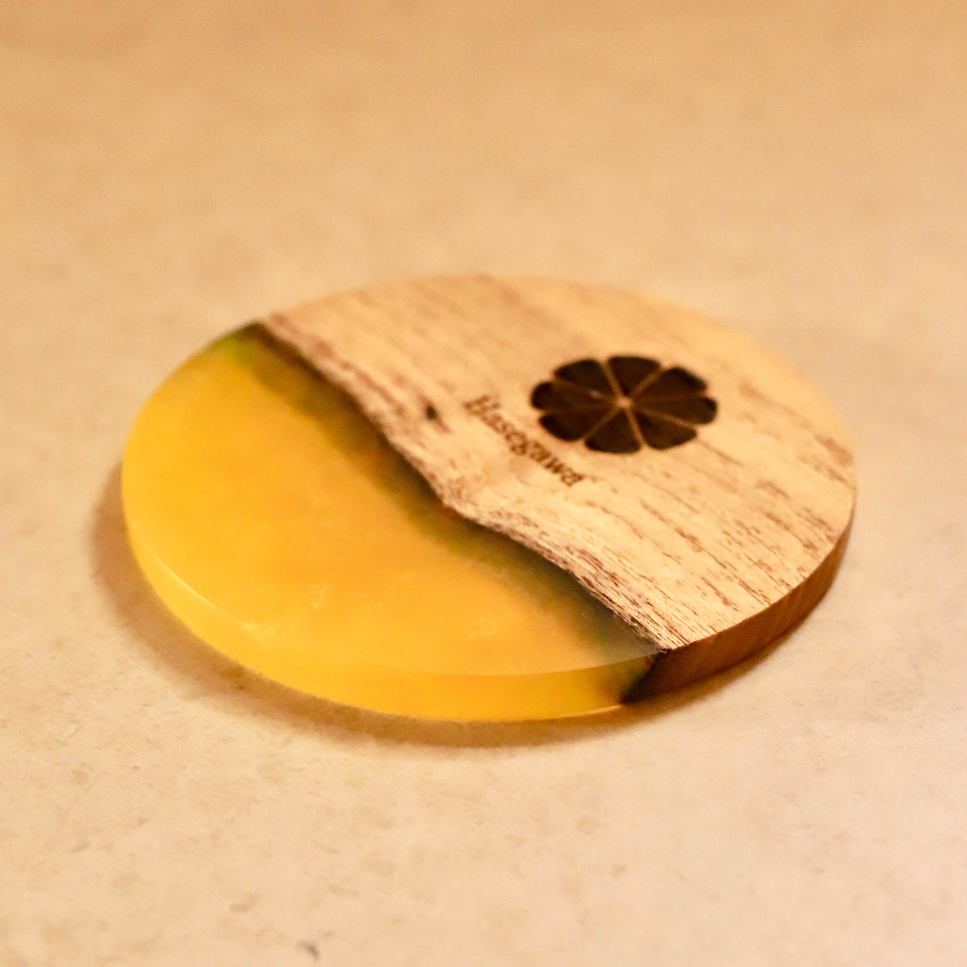 桐とレジンのコースター(レモンスパークル)