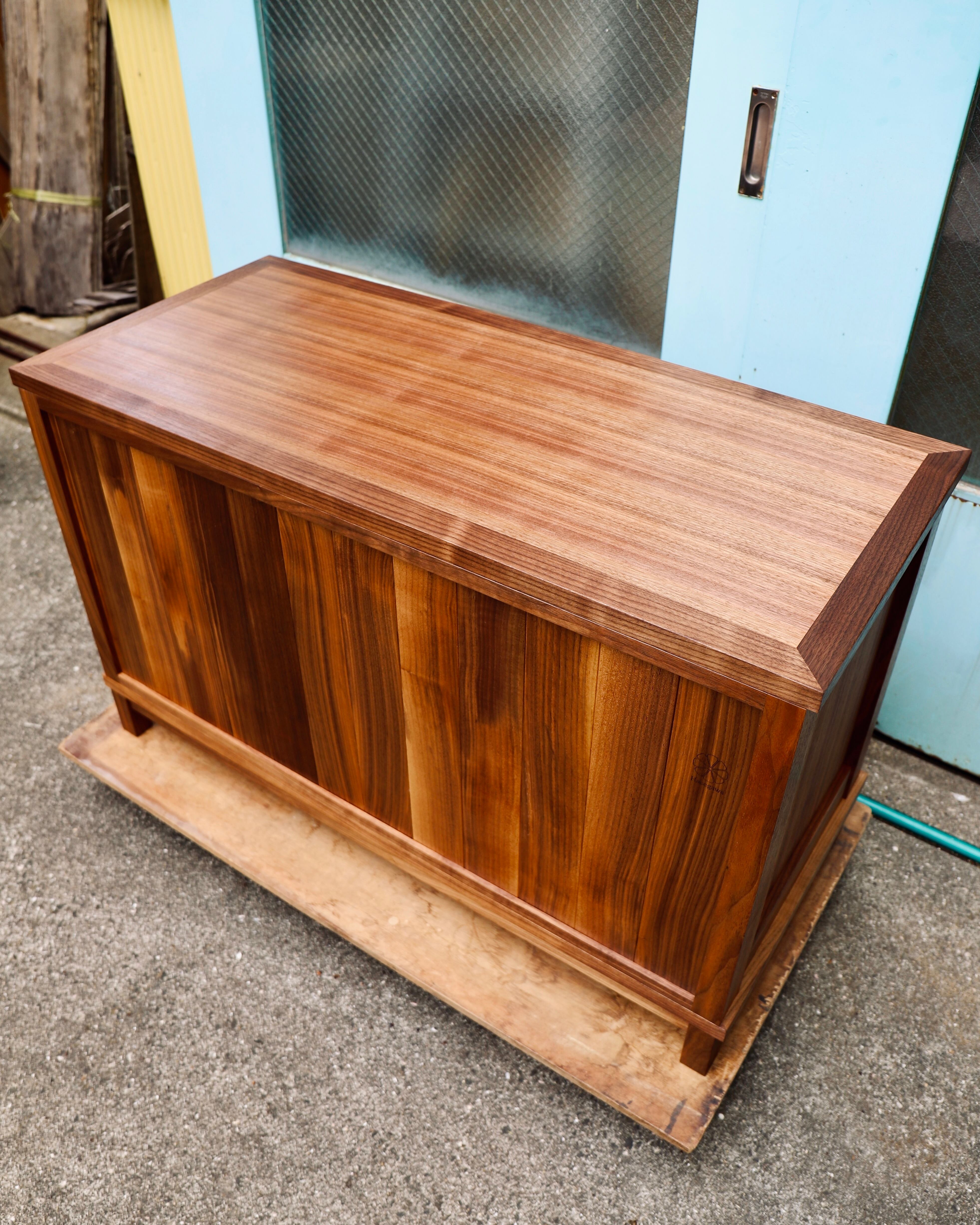 背板もウォールナットの無垢材で作りました。12枚の板をはめ込んでいますが全て取り外せるようになっています。